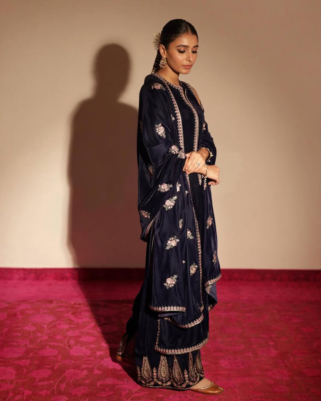 Shawl: Embroidered Velvet Shawl