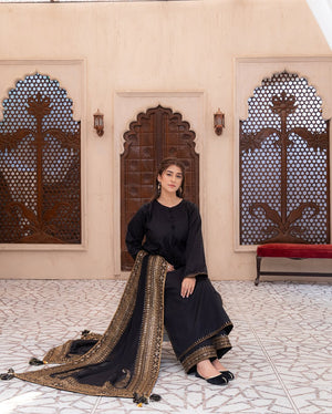 Unveil the allure of elegance with Black Mystique, a 3-piece suit designed for women who embrace sophistication and charm. This exquisite ensemble in luxurious black Premium Lawn exudes a captivating mystique, perfect for evening soirees, formal events, or festive celebrations.