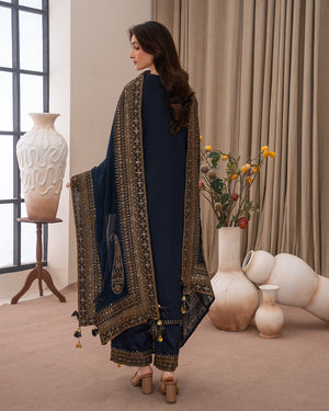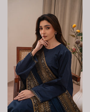 - Full-sleeves long shirt with copper tilla embroidery and sequins on hem and neckline