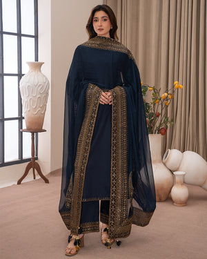 - Chiffon dupatta features copper tilla embroidery and sequin borders